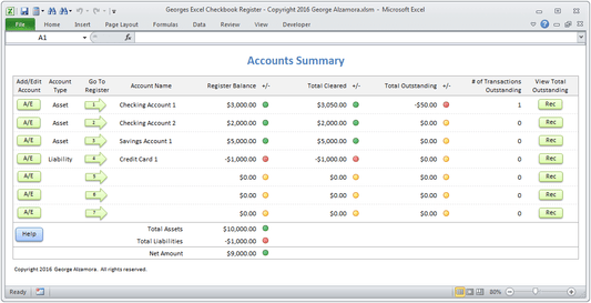 Checkbook Register Template, Money Management: All Accounts in One Place, Excel Spreadsheet