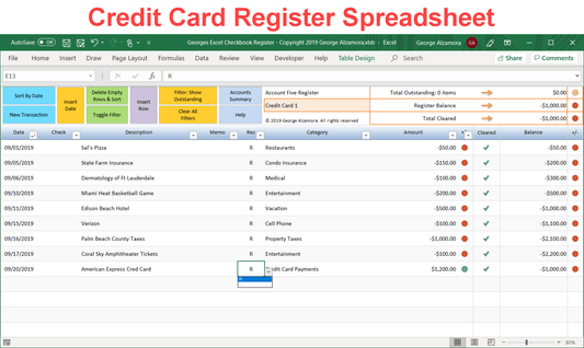 Excel Checkbook Register, Bank Reconciliation Spreadsheet, Track Multiple Checking & Credit Card Accounts