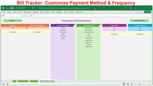 Bill Planner, Subscription & Expense Tracker Spreadsheet, Monthly Bill Payment Template, Personal Finance and Budget