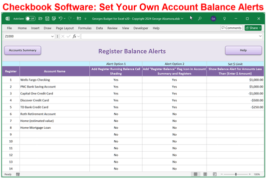Personal Finance Software, Checkbook Spreadsheet, Checking & Credit Card Account Tracker