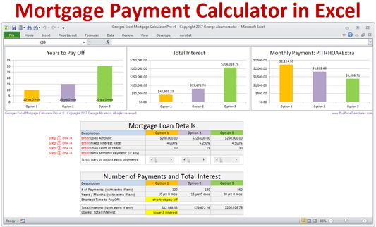 Excel Mortgage Calculator, Mortgage Payment Calculator with PITI, Amortization Schedule, Compare Loans